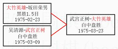 3.下半区半决赛武宫正树获胜,比分:武宫正树1:0吴清源。棋局: