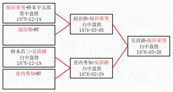 1.坂田荣男获得冠军,吴清源获得亚军。决赛比分:坂田荣男1:0吴清源。棋局: