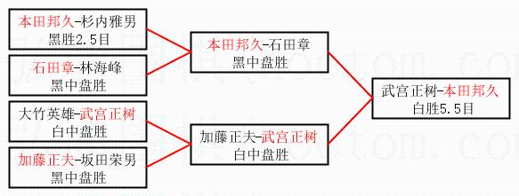 1.本田邦久获得冠军,武宫正树获得亚军。决赛比分:本田邦久1:0武宫正树。棋局: