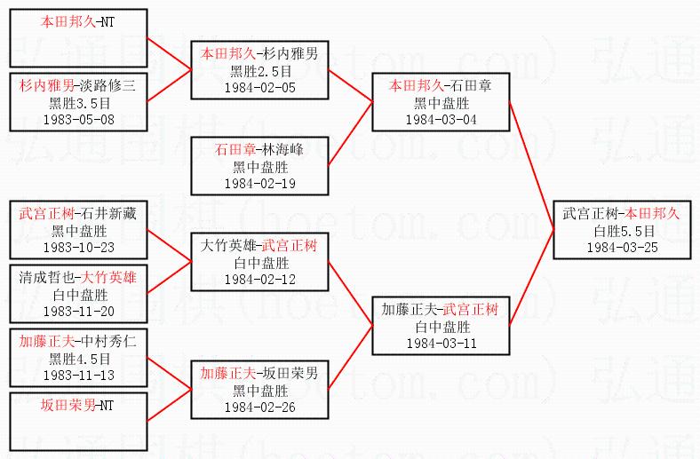 1.本田邦久获得冠军,武宫正树获得亚军。决赛比分:本田邦久1:0武宫正树。棋局: