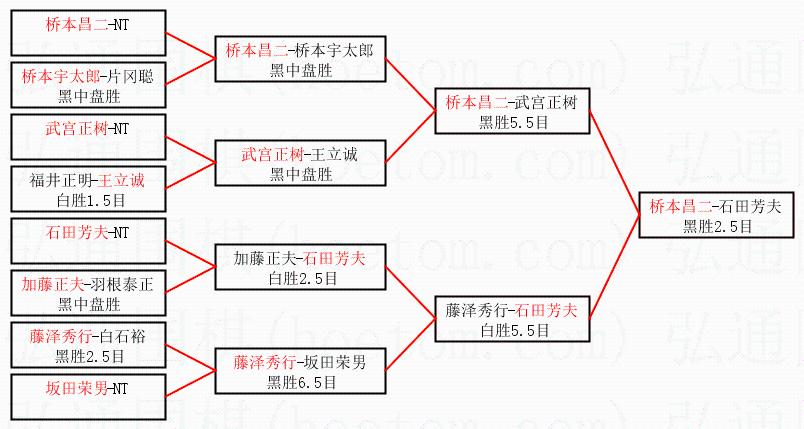 2.上半区半决赛桥本昌二获胜, 比分:桥本昌二 1:0 武宫正树。棋局: