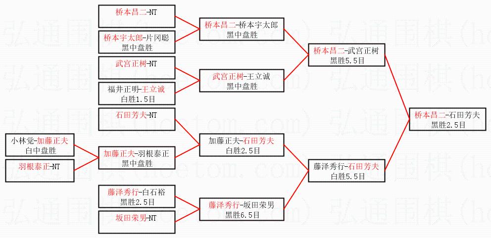 2.上半区半决赛桥本昌二获胜, 比分:桥本昌二 1:0 武宫正树。棋局: