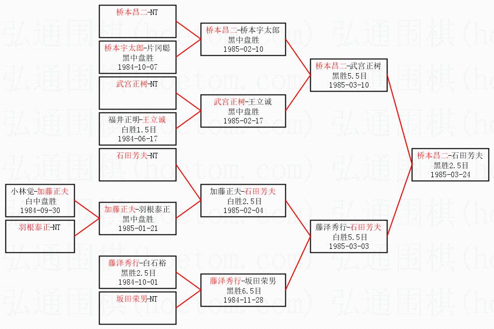 1.桥本昌二获得冠军,石田芳夫获得亚军。决赛比分:桥本昌二1:0石田芳夫。棋局: