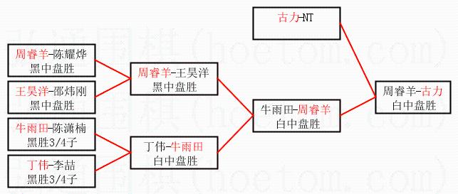 | 1.古力获得冠军,周睿羊获得亚军。决赛比分:古力3:0周睿羊。棋局: | ||