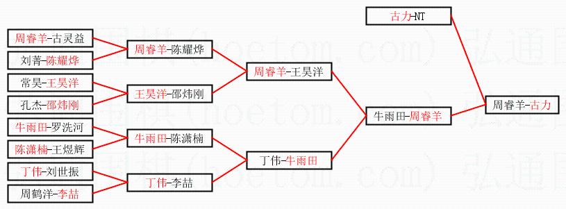 | 1.古力获得冠军,周睿羊获得亚军。决赛比分:古力3:0周睿羊。棋局: | ||