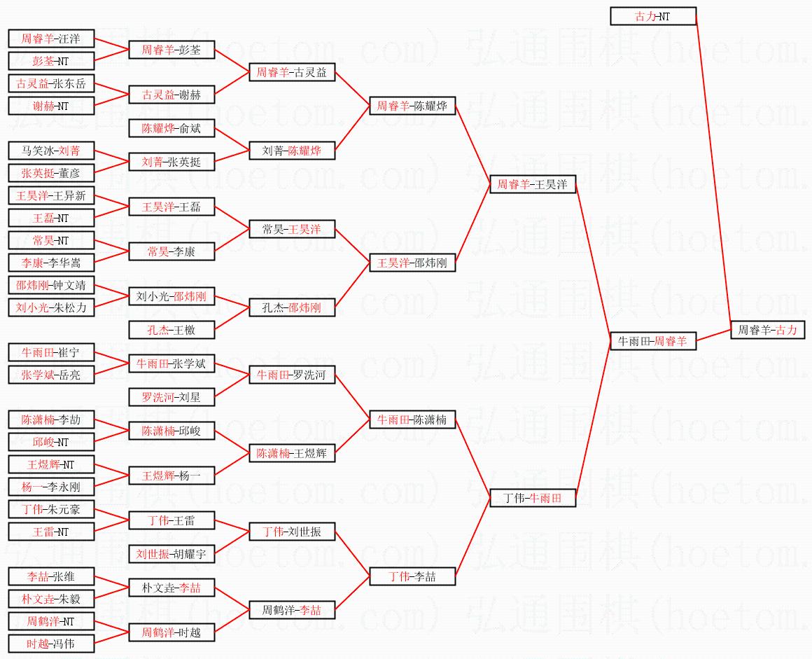 1.古力获得冠军,周睿羊获得亚军。决赛比分:古力3:0周睿羊。棋局: