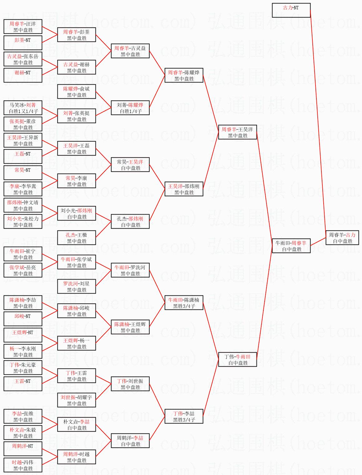 1.古力获得冠军,周睿羊获得亚军。决赛比分:古力3:0周睿羊。棋局: