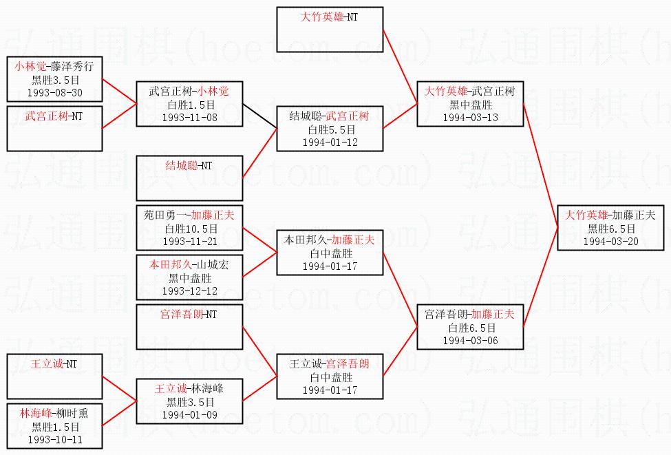 1.大竹英雄获得冠军,加藤正夫获得亚军。决赛比分:大竹英雄1:0加藤正夫。棋局: