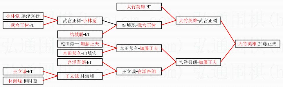 2.上半区半决赛大竹英雄获胜, 比分:大竹英雄 1:0 武宫正树。棋局: