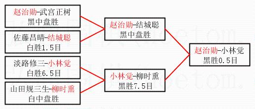 2.上半区半决赛赵治勋获胜, 比分:赵治勋 1:0 结城聪。棋局: