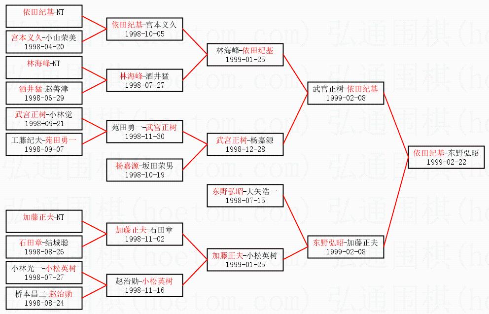 1.依田纪基获得冠军,东野弘昭获得亚军。决赛比分:依田纪基1:0东野弘昭。棋局: