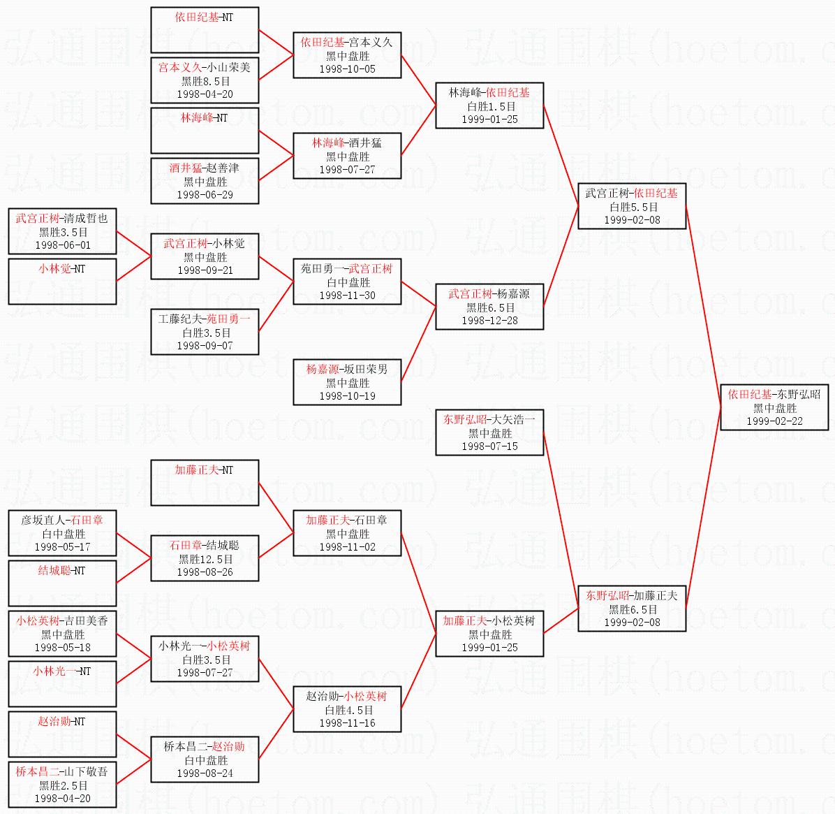 1.依田纪基获得冠军,东野弘昭获得亚军。决赛比分:依田纪基1:0东野弘昭。棋局: