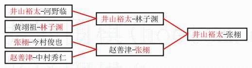 2.上半区半决赛井山裕太获胜, 比分:井山裕太 1:0 林子渊。棋局: