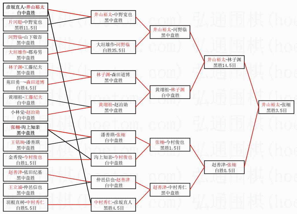 2.上半区半决赛井山裕太获胜, 比分:井山裕太 1:0 林子渊。棋局: