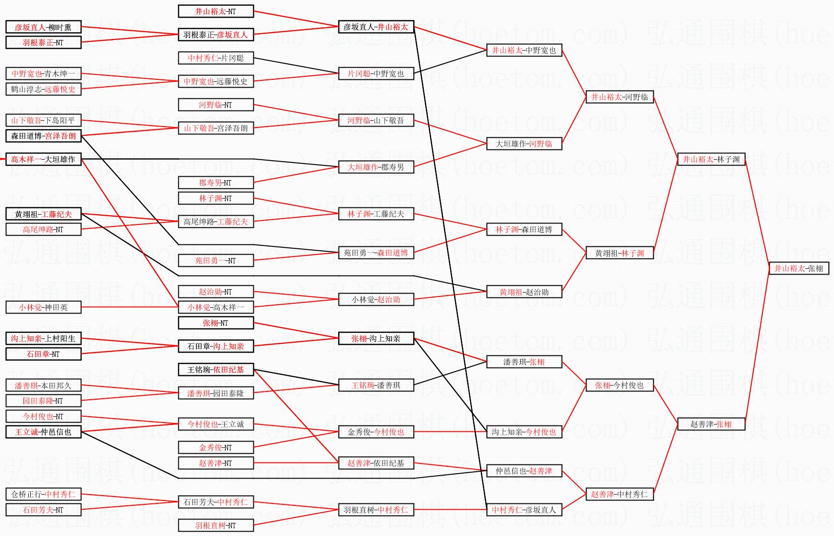 2.上半区半决赛井山裕太获胜, 比分:井山裕太 1:0 林子渊。棋局: