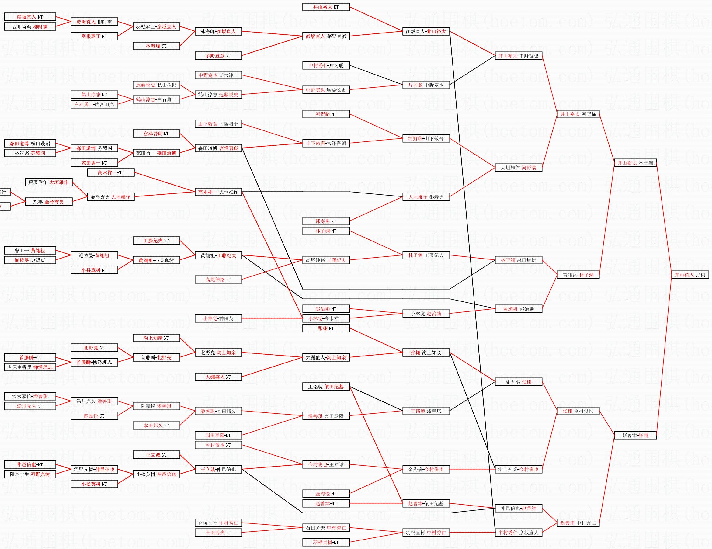 2.上半区半决赛井山裕太获胜, 比分:井山裕太 1:0 林子渊。棋局: