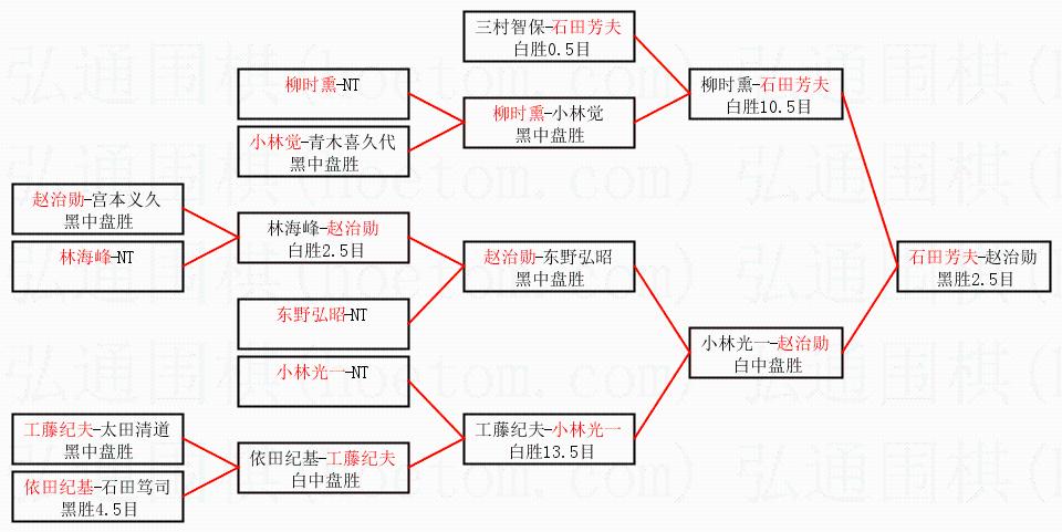 3.下半区半决赛赵治勋获胜,比分:赵治勋1:0小林光一。棋局: