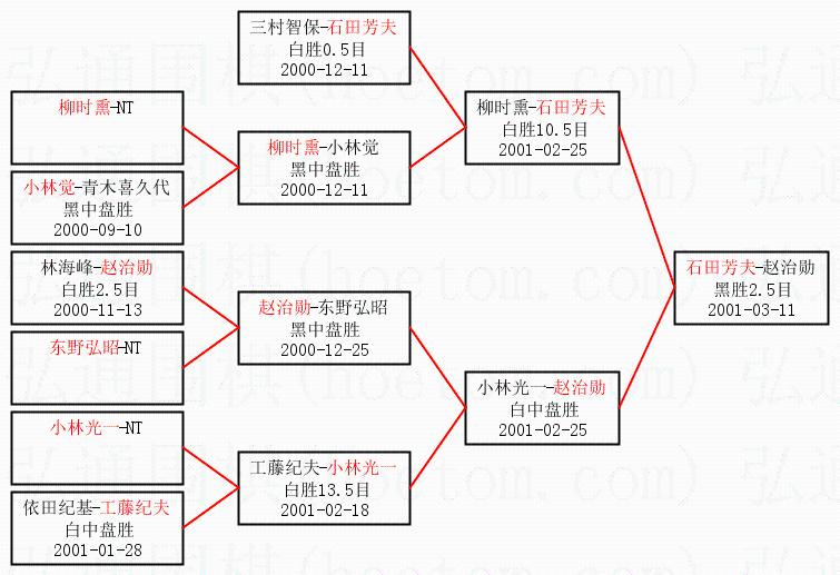 3.下半区半决赛赵治勋获胜,比分:赵治勋1:0小林光一。棋局: