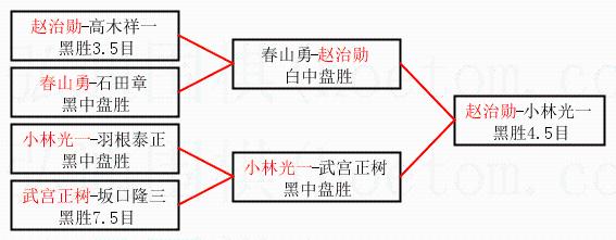 2.上半区半决赛赵治勋获胜, 比分:赵治勋 1:0 春山勇。棋局: