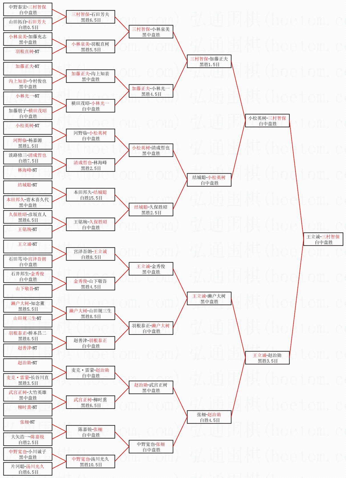 1.三村智保获得冠军,王立诚获得亚军。决赛比分:三村智保1:0王立诚。棋局: