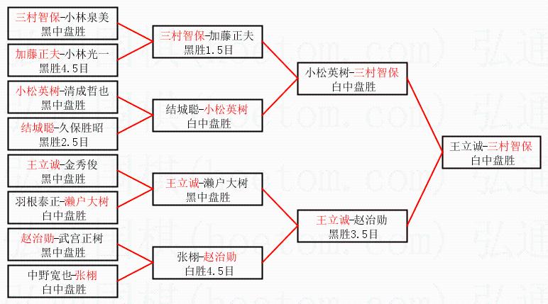 1.三村智保获得冠军,王立诚获得亚军。决赛比分:三村智保1:0王立诚。棋局: