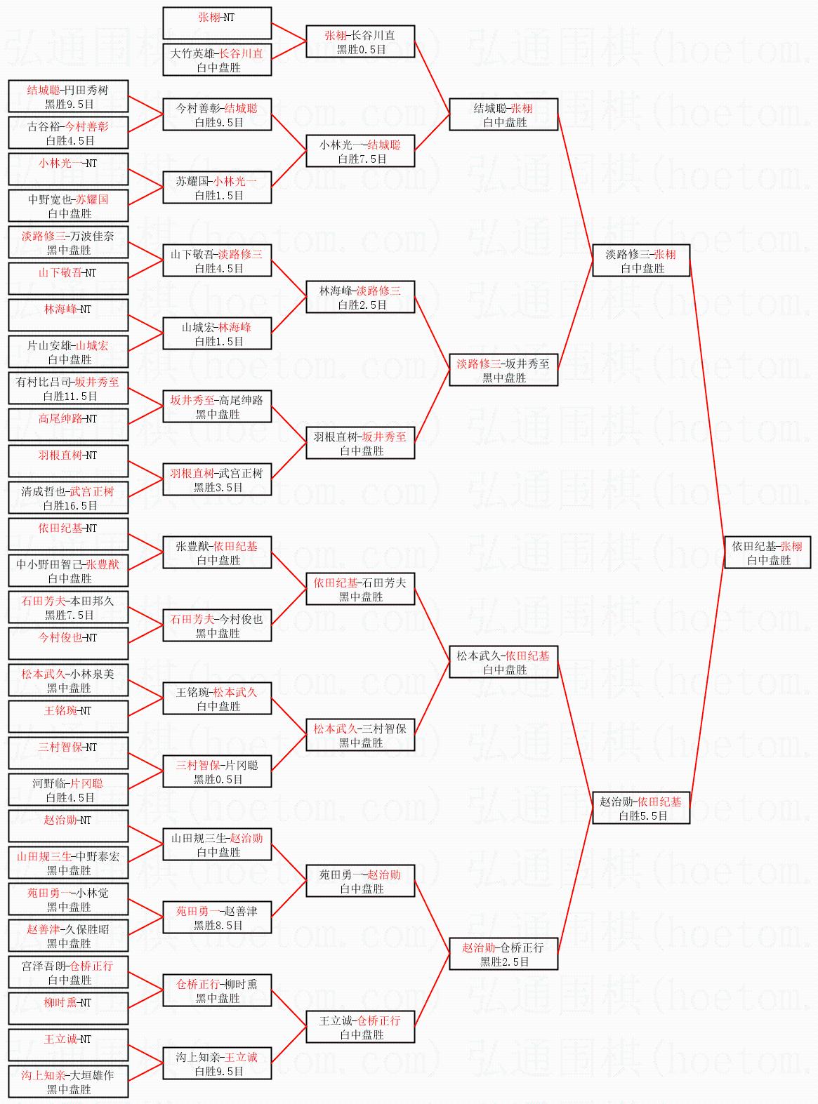 1.张栩获得冠军,依田纪基获得亚军。决赛比分:张栩1:0依田纪基。棋局: