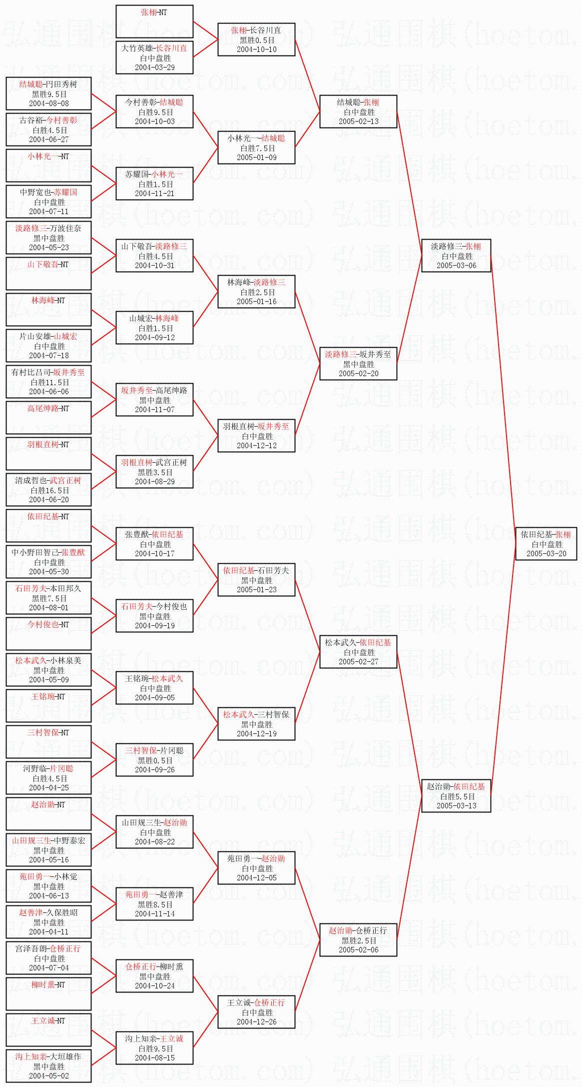 1.张栩获得冠军,依田纪基获得亚军。决赛比分:张栩1:0依田纪基。棋局: