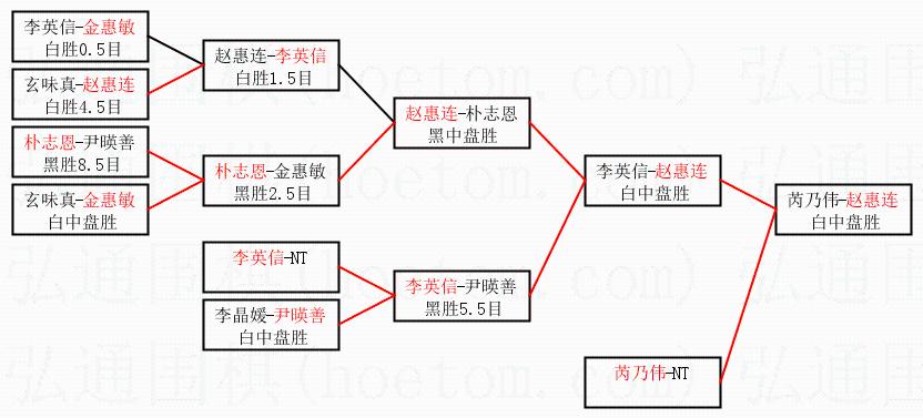 1.赵惠连获得冠军,芮乃伟获得亚军。决赛比分:赵惠连2:0芮乃伟。棋局:
