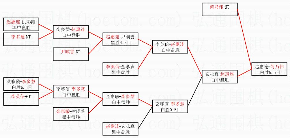 1.芮乃伟获得冠军,赵惠连获得亚军。决赛比分:芮乃伟2:0赵惠连。棋局: