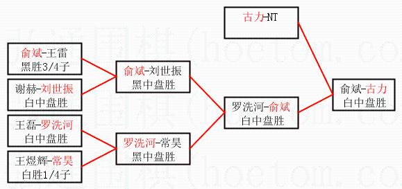 | 1.古力获得冠军,俞斌获得亚军。决赛比分:古力3:0俞斌。棋局: | ||