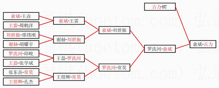 | 1.古力获得冠军,俞斌获得亚军。决赛比分:古力3:0俞斌。棋局: | ||