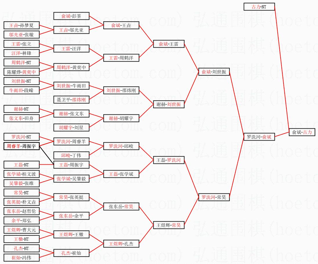 | 1.古力获得冠军,俞斌获得亚军。决赛比分:古力3:0俞斌。棋局: | ||