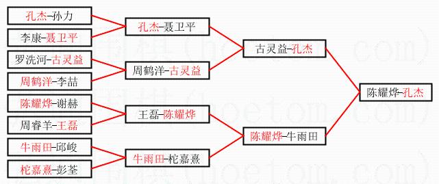 1.孔杰获得冠军,陈耀烨获得亚军。决赛比分:孔杰1:0陈耀烨。棋局:
