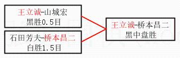 2.上半区半决赛王立诚获胜, 比分:王立诚 1:0 山城宏。棋局: