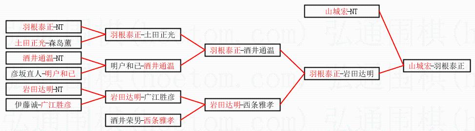 1.山城宏获得冠军,羽根泰正获得亚军。决赛比分:山城宏1:0羽根泰正。棋局: