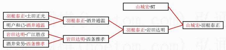 3.下半区半决赛羽根泰正获胜,比分:羽根泰正1:0岩田达明。棋局: