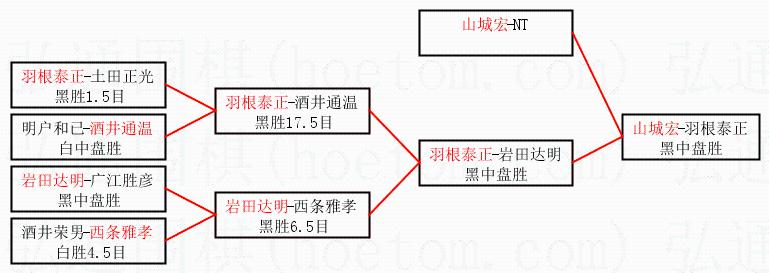 1.山城宏获得冠军,羽根泰正获得亚军。决赛比分:山城宏1:0羽根泰正。棋局: