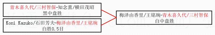 | 1.青木喜久代/三村智保获得冠军,梅泽由香里/王铭琬获得亚军。决赛比分:青木喜久代/三村智保1:0梅泽由香里/王铭琬。棋局: | ||