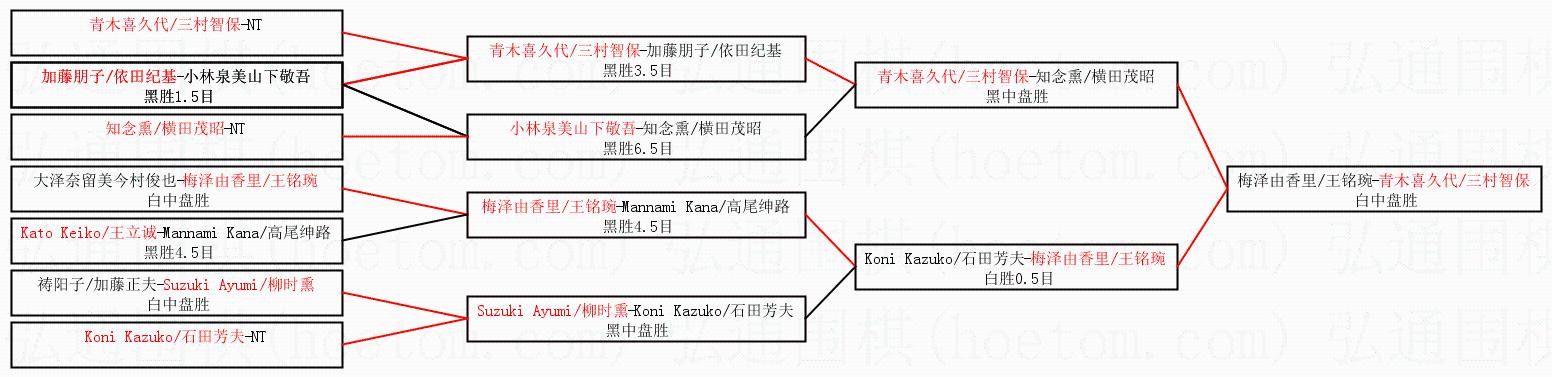 | 1.青木喜久代/三村智保获得冠军,梅泽由香里/王铭琬获得亚军。决赛比分:青木喜久代/三村智保1:0梅泽由香里/王铭琬。棋局: | ||