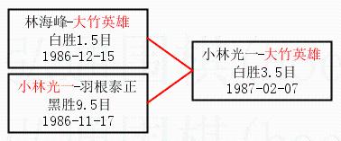 2.上半区半决赛大竹英雄获胜, 比分:大竹英雄 1:0 林海峰。棋局: