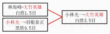 2.上半区半决赛大竹英雄获胜, 比分:大竹英雄 1:0 林海峰。棋局: