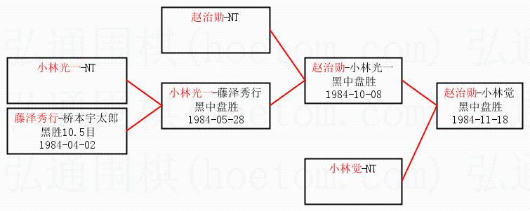 2.上半区半决赛赵治勋获胜, 比分:赵治勋 1:0 小林光一。棋局: