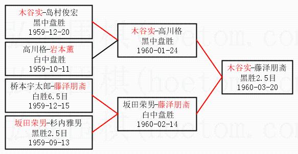 1.木谷实获得冠军,藤泽朋斋获得亚军。决赛比分:木谷实1:0藤泽朋斋。棋局: