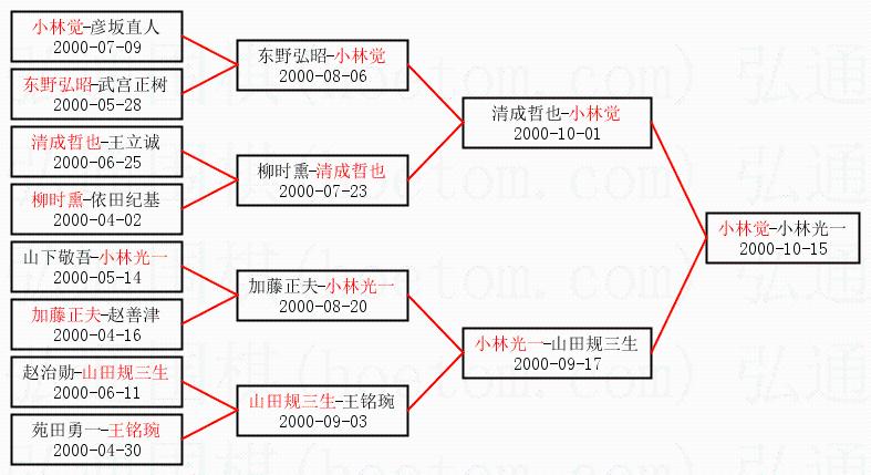 1.小林觉获得冠军,小林光一获得亚军。决赛比分:小林觉1:0小林光一。棋局: