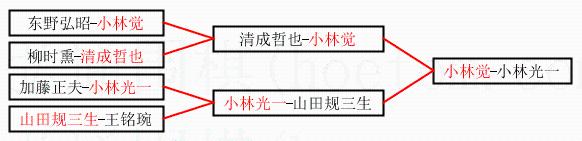 1.小林觉获得冠军,小林光一获得亚军。决赛比分:小林觉1:0小林光一。棋局: