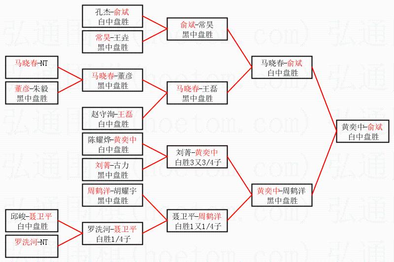 1.俞斌获得冠军,黄奕中获得亚军。决赛比分:俞斌1:0黄奕中。棋局: