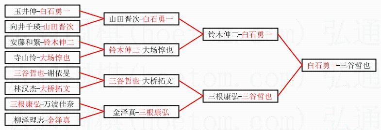1.白石勇一获得冠军,三谷哲也获得亚军。决赛比分:白石勇一2:1三谷哲也。棋局:
