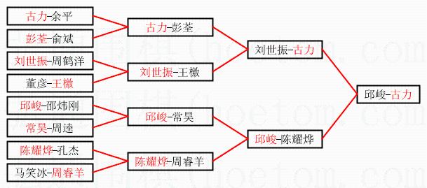 1.古力获得冠军,邱峻获得亚军。决赛比分:古力1:0邱峻。棋局: