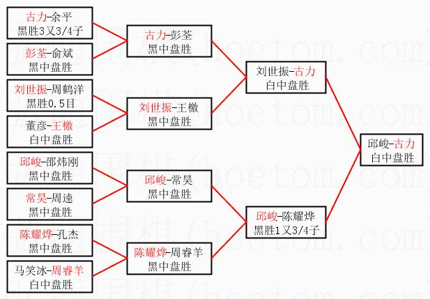 2.上半区半决赛古力获胜, 比分:古力 1:0 刘世振。棋局: