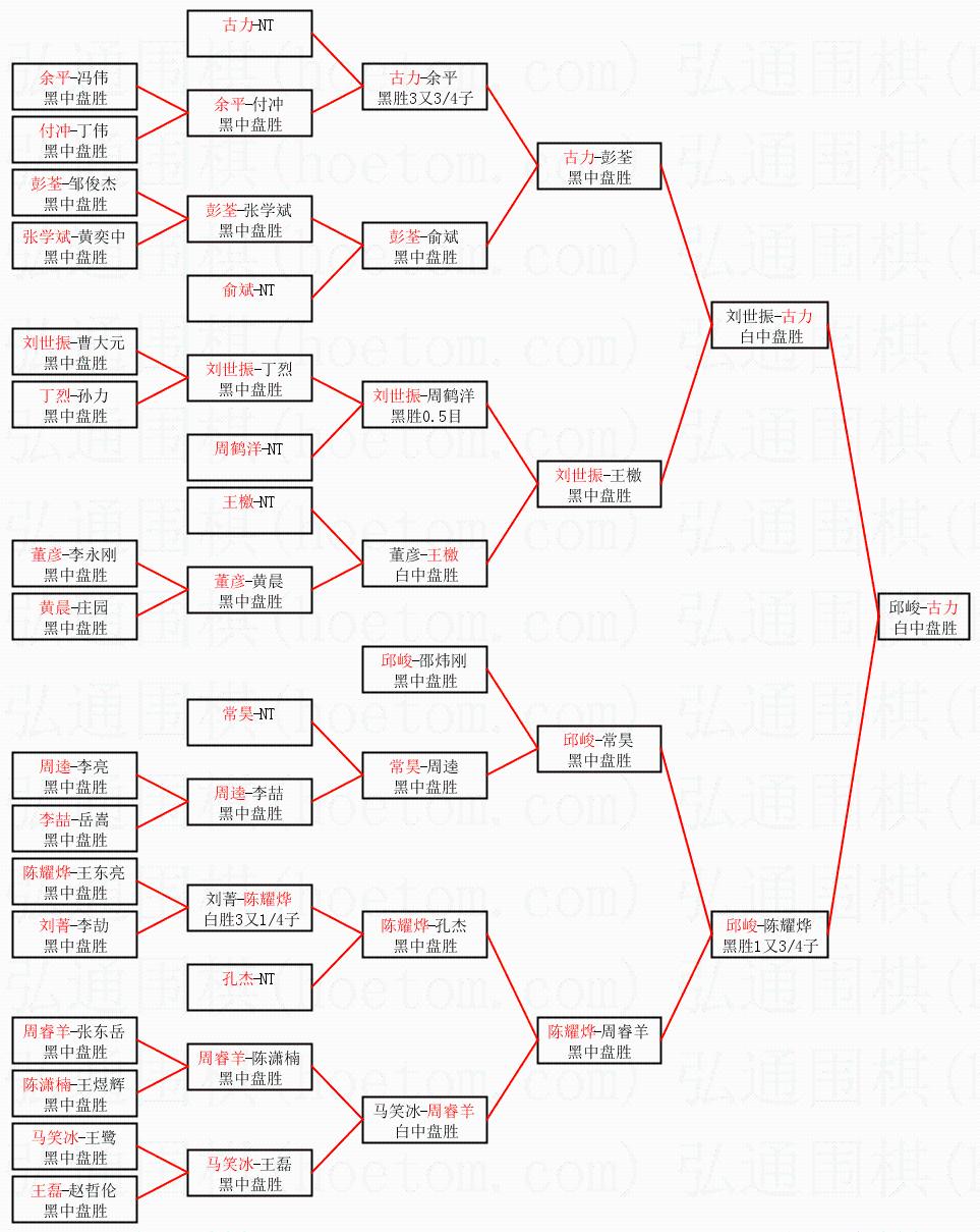 1.古力获得冠军,邱峻获得亚军。决赛比分:古力1:0邱峻。棋局: